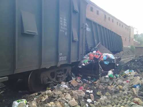 今天早晨 ,雙鴨山中心站至六號線黑龍江北辰公司附近,貨運(yùn)火車撞到垃圾箱上,可能垃圾箱離火車道太近。沒有人員受傷,但是火車車廂受損變形,垃圾箱變形嚴(yán)重!