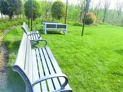 占地69.5萬平方米的生態(tài)園是上海國際旅游度假區(qū)的組成部分。行走在園內(nèi),記者發(fā)現(xiàn),這個生態(tài)園基本保留了川沙農(nóng)村的自然風貌,曾經(jīng)鄉(xiāng)村的小河蜿蜒流淌,河邊蘆葦叢叢。而仔細看會發(fā)現(xiàn),道路旁、草坪上的靠背長椅上標注著:本長椅由3700個牛奶飲料紙包裝再生利用制成;垃圾桶上標注著:我是用900個牛奶飲料紙包裝再生利用制成的哦。