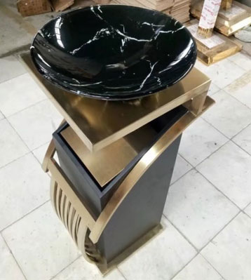 高檔鍍鈦新概念座地煙灰桶批量生產圖