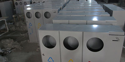 欣方圳酒店室內(nèi)鋼制三四分類垃圾桶批量生產(chǎn)圖