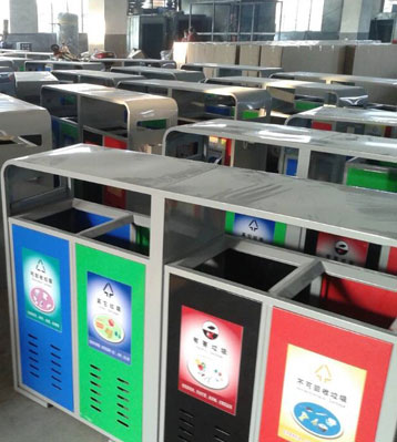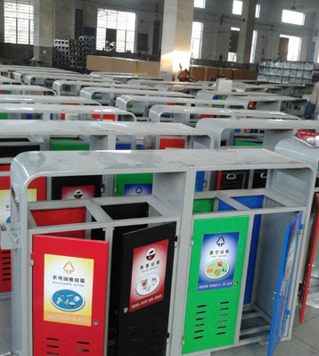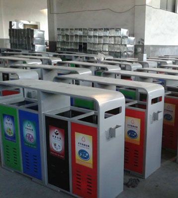 戶外鋼制四分類垃圾桶批量生產(chǎn)圖