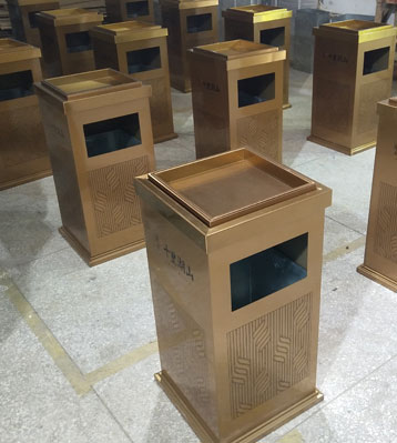 E242垃圾桶電鍍玫瑰金工廠批量生產(chǎn)圖