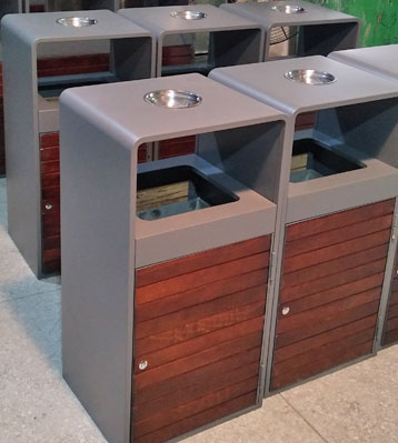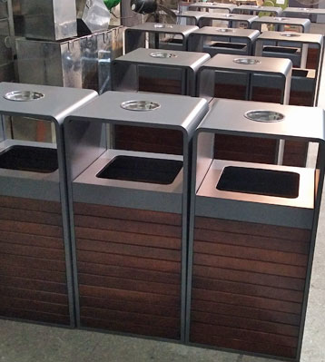 欣方圳戶外鋼木分類果皮箱批量生產(chǎn)圖