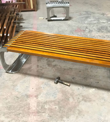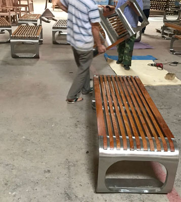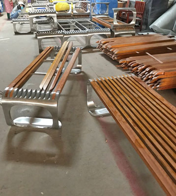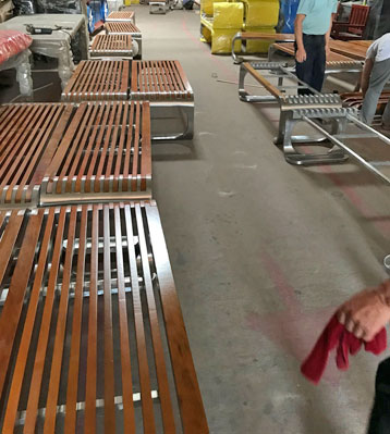 欣方圳不銹鋼室外休閑椅凳面防腐木材質(zhì)制作流程示意圖,工藝領(lǐng)先,品質(zhì)卓越,真正經(jīng)久耐用。