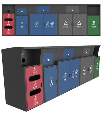 深圳城管指定新標(biāo)準(zhǔn)垃圾分類投放點(diǎn)玻金塑紙分類柜