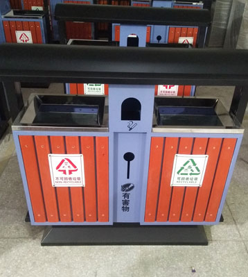 欣方圳戶外鋼木分類垃圾桶批量生產(chǎn)圖