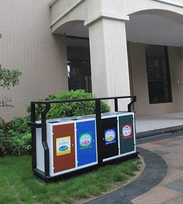 F139戶外鋼板四分類垃圾桶